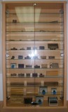 VITRINA CON DIVERSOS TIPOS DE FAROLES Y DOCUMENTACION